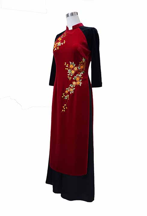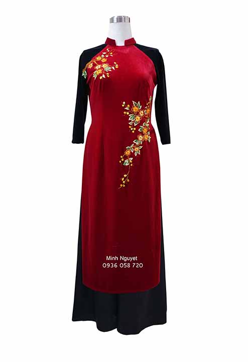 Áo được may bằng chất liệu nhung theo cao cấp có độ co giãn và rủ cao dễ mặc, phù hợp với nhiều dáng và số đo khác nhau nên thường được nhiều chị em chọn để may áo dài truyền thống, đặc biệt vào dịp Tết truyền thống