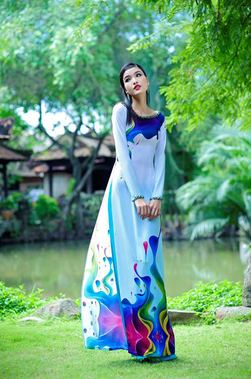 Đường phố, Màu nước, Thủy mặc và Sơn dầu lần lượt được truyền tải khéo léo trên từng thiết kế với nét tươi vui cùng tinh thần phóng khoáng, cởi mở của nghệ thuật vẽ đường phố, sự hòa trộn tinh tế và nhẹ nhàng của tranh vẽ màu nước, sự thanh tao và lắng động đến từ phong cách vẽ thủy mạc và cả sự sống động đầy mê hoặc của nghệ thuật vẽ tranh sơn dầu đã tạo ra 1 chiếc áo dài in 3D không thể đẹp hơn nữa.