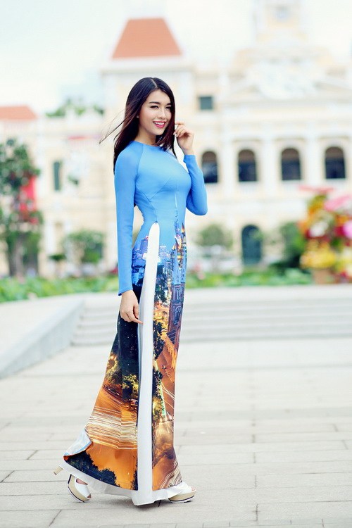 Mẫu áo dài in 3D được thiết kế dựa trên tình yêu của con người với mảnh đất Sài Thành đông đúc. Hình in là một bức ảnh được chụp từ trên cao xuống lúc Sài Gòn về đêm, hình được in trên áo đã nói lên vẻ đẹp và chất lượng của nó.