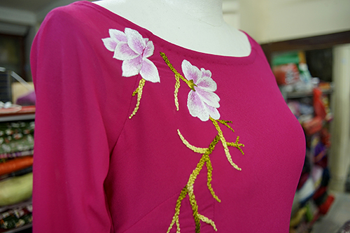 Thêu hoa tại vị trí eo nhằm che đi khuyết điểm vòng 2