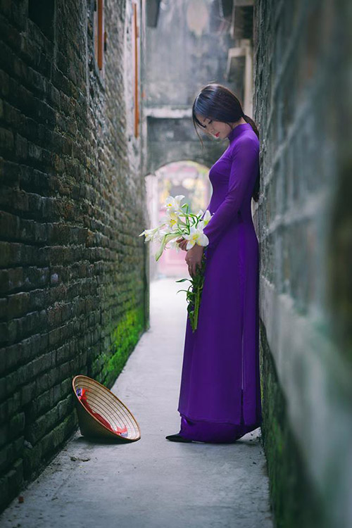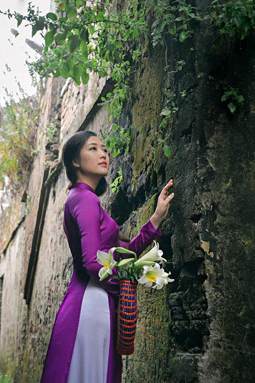 Chụp ảnh áo dài bên hoa loa kèn, Những bức tường rêu phong màu thời gian tôn lên nét đẹp đằm thắm của tà áo dài và xuân sắc người con gái