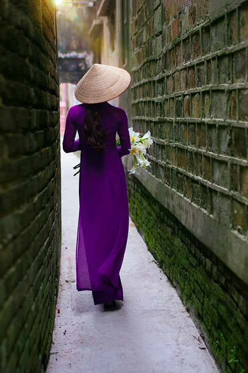 Hình ảnh nón lá truyền thống của Việt Nam cũng được chị em lựa chọn để thả dáng bên tà áo dài.