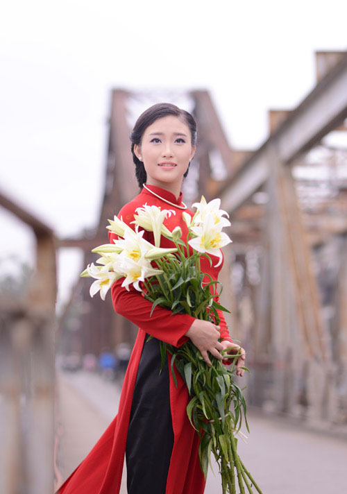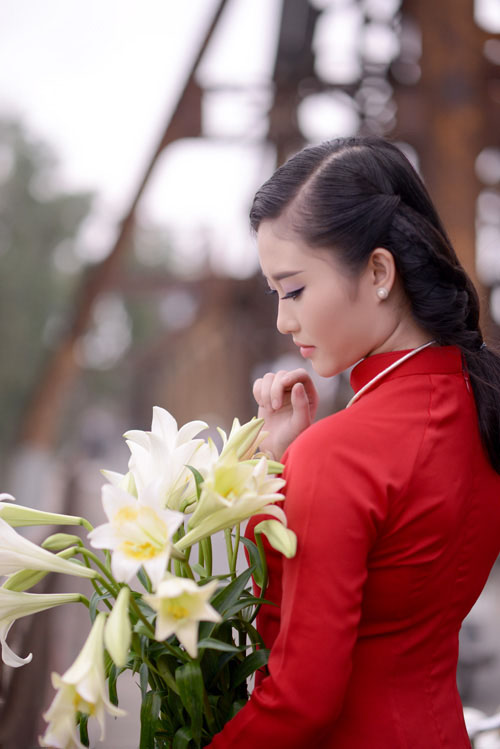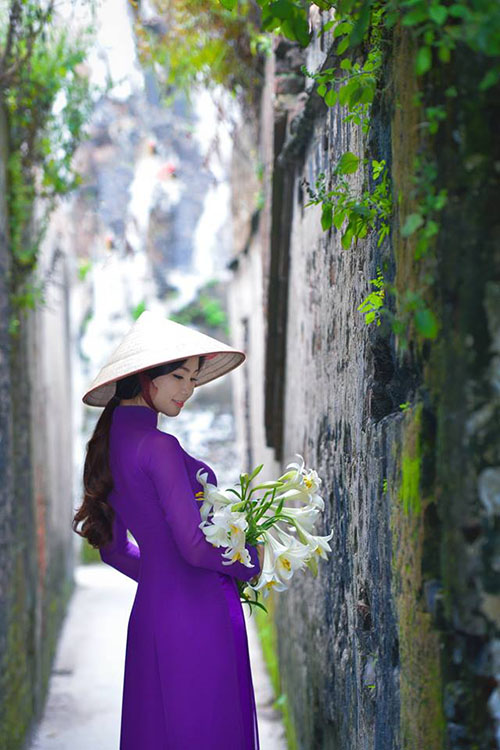 Mỗi khi tháng 4 về, bạn gái Hà thành lại nô nức khoe dáng mềm mại với tà áo dài bên hoa loa kèn.