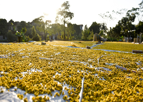 Phơi khô hoa cúc tiến vua trước khi bào chế thành thuốc