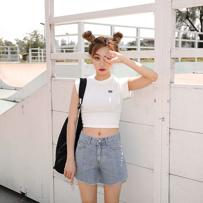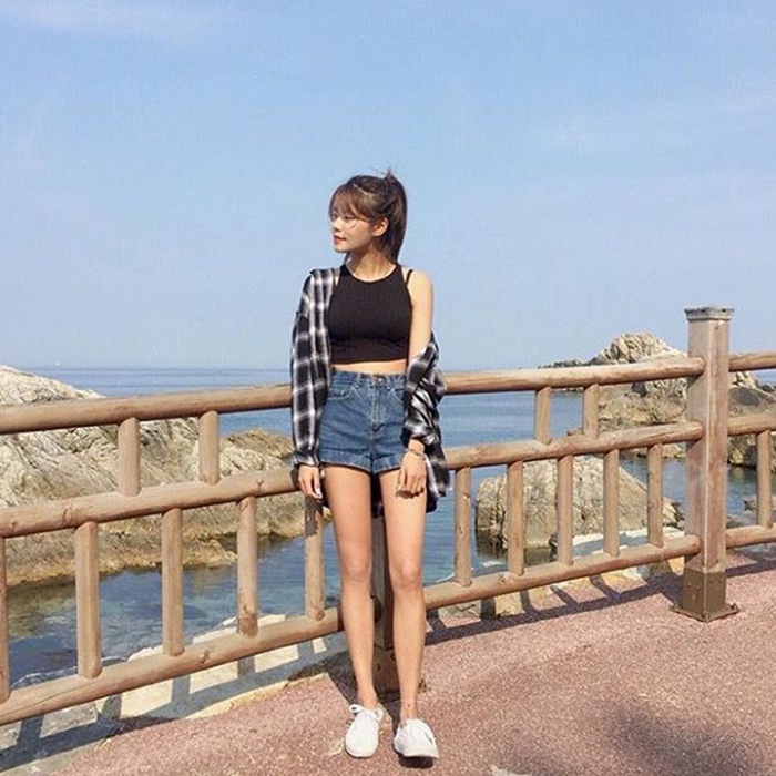 Chưa kể quần short cũng sẽ tôn lên đôi chân dài đáng kể, giúp các nàng “nấm lùn” ăn gian chiều cao cực hiệu quả. Bạn chỉ cần diện quần short cùng áo 2 dây, croptop hoặc áo thun thì đều đẹp.