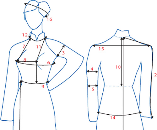 10. Vòng nách: tay chống lên hông, đo vòng qua nách vừa khít.