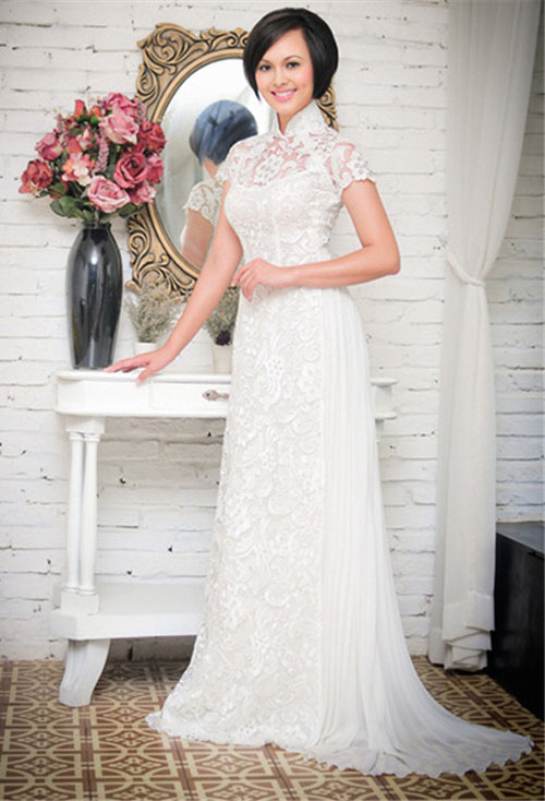 Bên cạnh chiếc áo dài cưới truyền thống còn có các kiểu áo dài cách tân, mang lại nhiều sự lựa chọn hơn cho cô dâu. Kiểu cổ truyền thống, cổ tim, cổ thuyền, cổ đắp voan… đều phù hợp với không khí trang nghiêm của đám hỏi.
