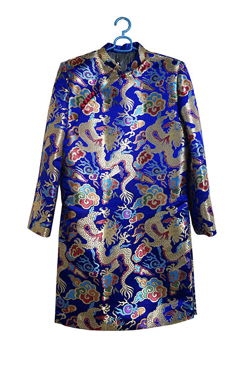 Áo dài cách tân nam vải gấm họa tiết nổi