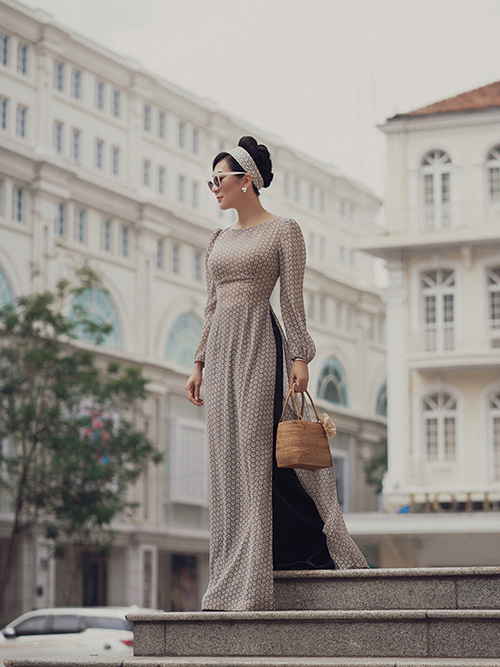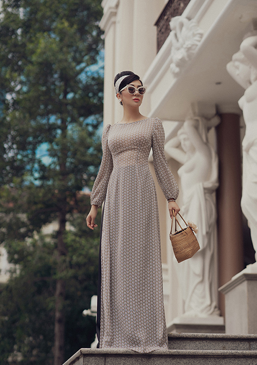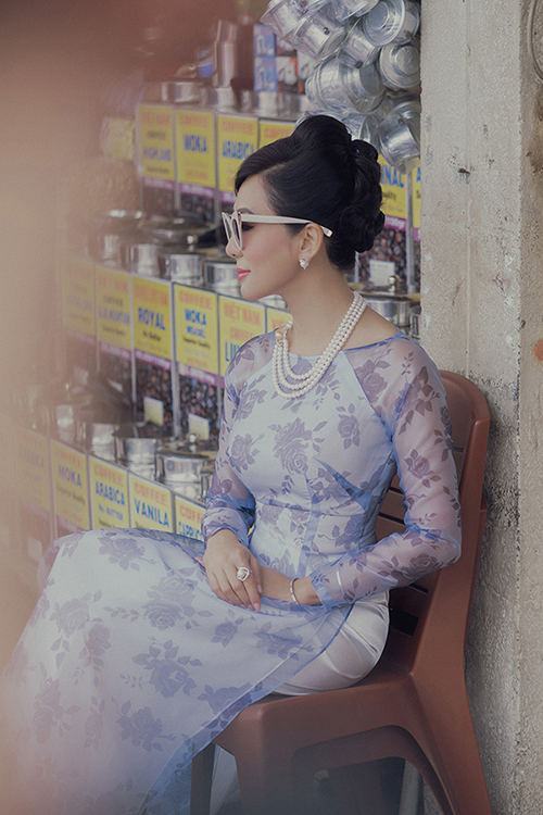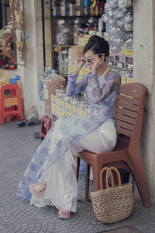 Áo dài may chất liệu voan mỏng và có lớp lót bên trong tạo cảm giác thỏa mái nhưng kín đáo khi dạo phố.