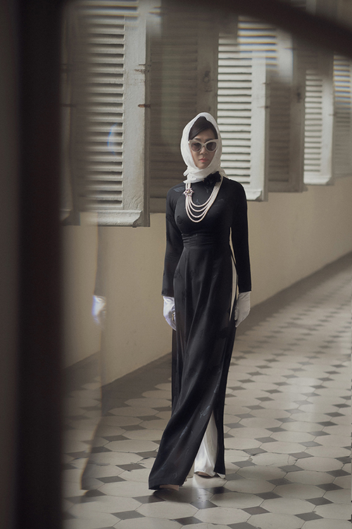 MC Nguyễn Cao Kỳ Duyên mặc áo dài đen