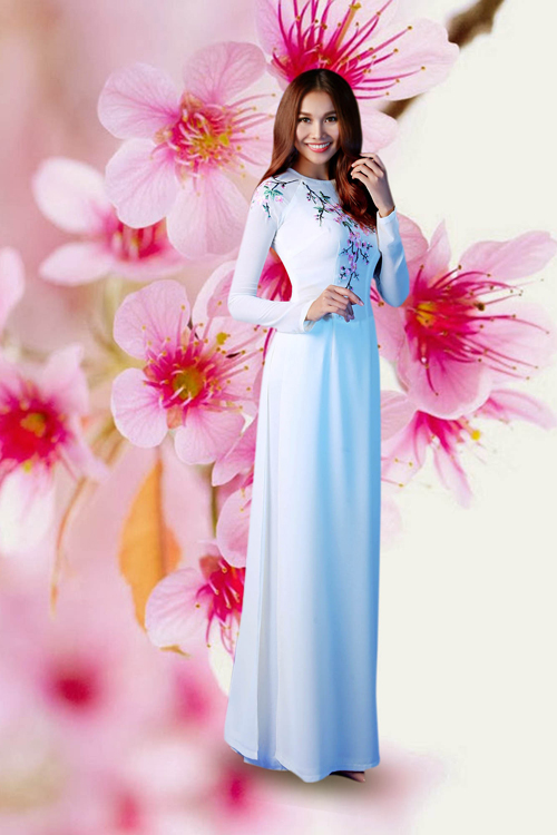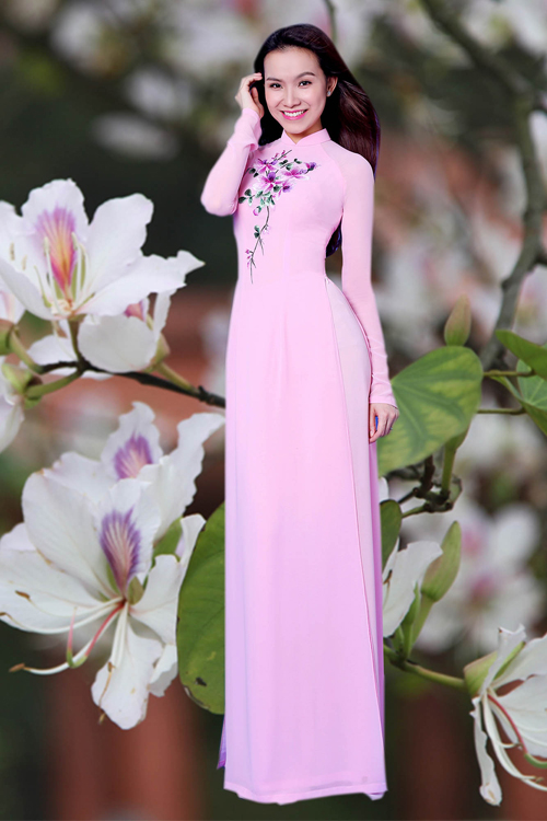 Mỹ nhân việt duyên dáng tà áo dài việt thêu các mùa hoa.