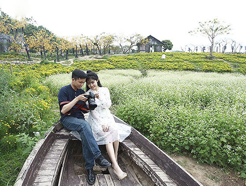 Chụp ảnh với cánh đồng hoa tam giác mạch nở trái mùa ở hà nội