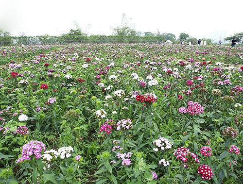 Cánh đồng hoa này nằm ở địa phận Thạch Cầu, quận Long Biên, Hà Nội.