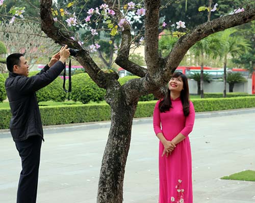 Nhiều người Hà Nội tranh thủ tìm đến đường Hoàng Diệu, Bắc Sơn... để kịp ghi lại những khoảnh khắc ấn tượng bên những cánh hoa ban bung nở rực rỡ.