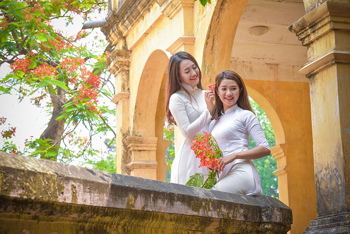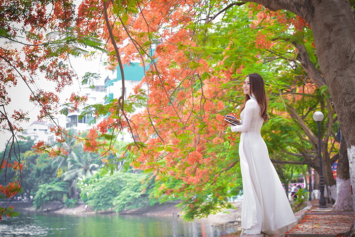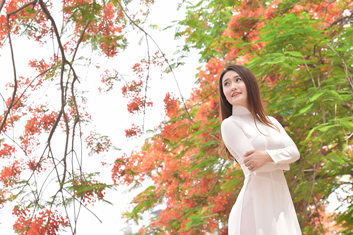 Áo dài trắng với hoa phượng